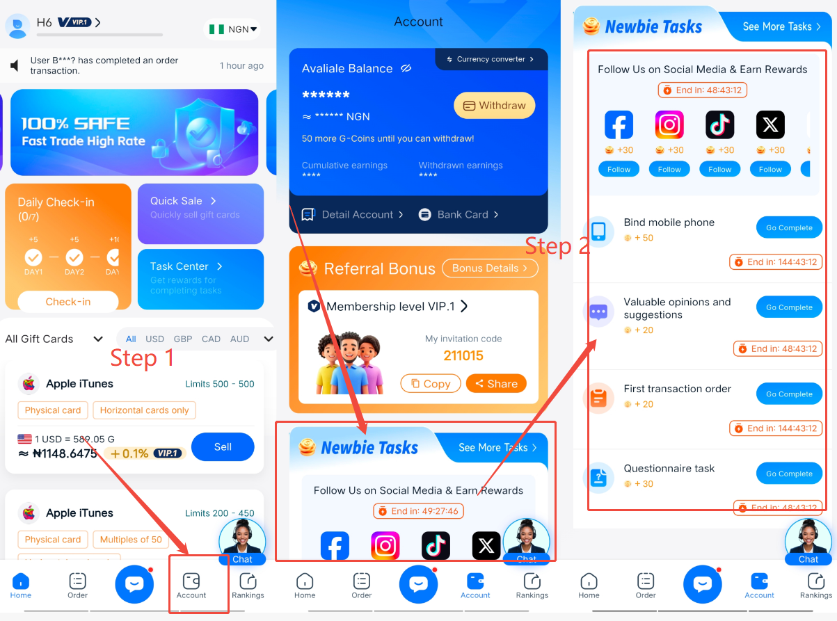 3. Follow the steps to complete the tasks and receive rewards.